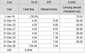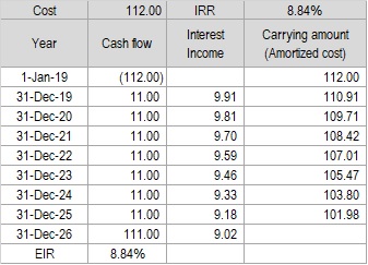 The EIR is computed based on the cash inflows and outflows. The transaction costs are also amortized meaning it is treated as part of the interest income over the life of the financial asset as shown below: