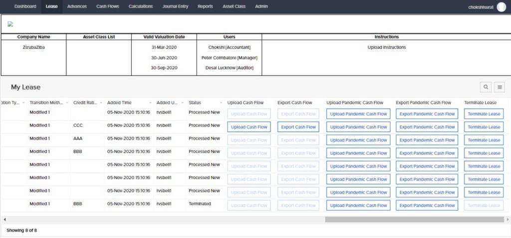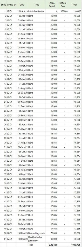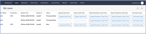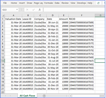 A csv file “allcashflow.csv” will be downloaded by the system with the pre fixed lease id and lease payment schedule.