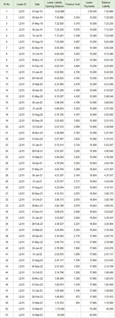 2. Find the Finance cost – Use the incremental borrowing rate from input file in the formula