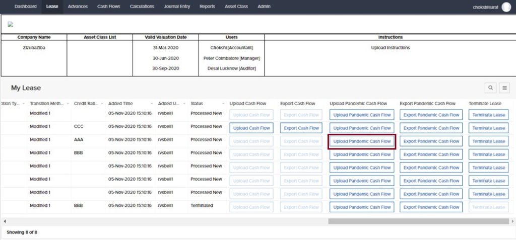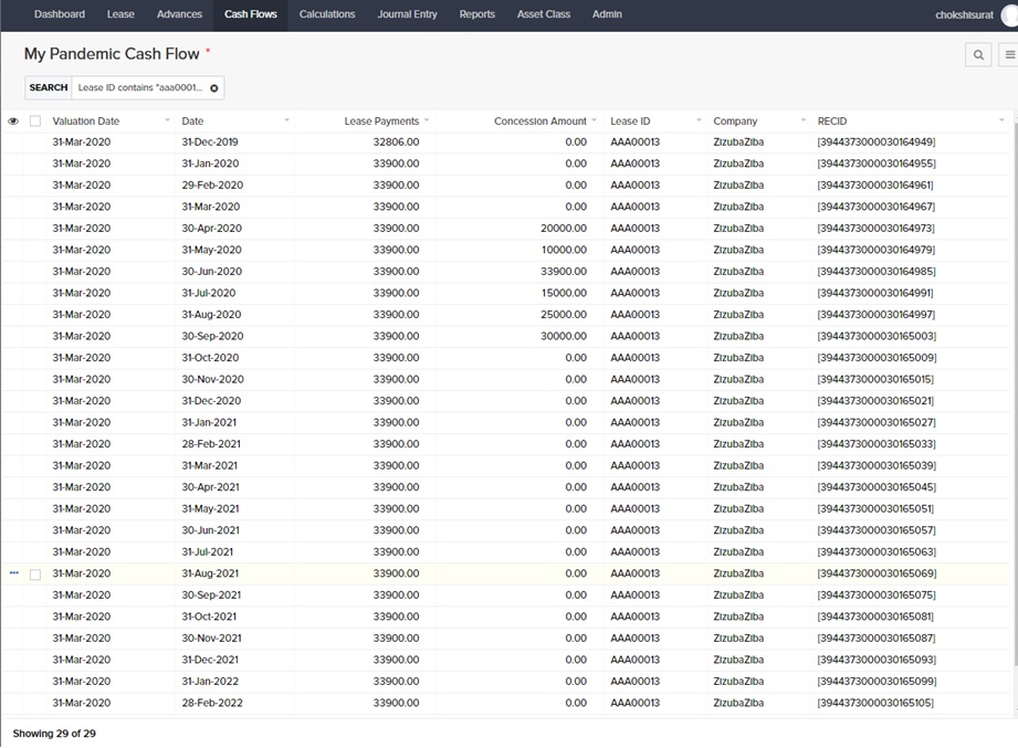 The lessor may provide some relief considering the pandemic situation. If so you can upload the revised cash flows taking into account the concessions so that the system will provide the necessary accounting treatment of the same.