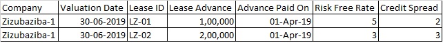 2. For the first line, where the advance amount is given the discount factor is found by the number of days from the start date to the end date in the formula: